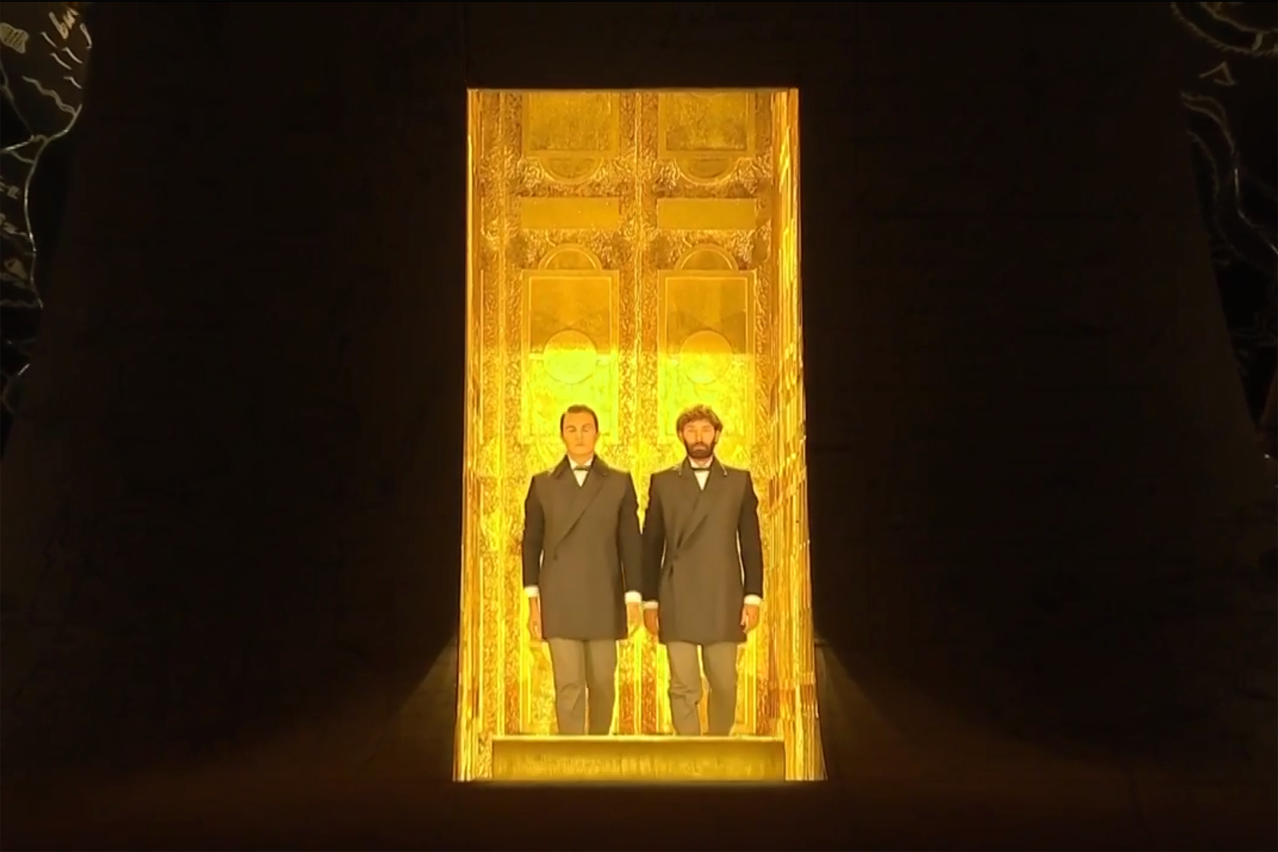A red modular wharf-like structure, inspired by Yakov Chernikhovs drawings, fills the courtyard of Munich’s Nymphenburg Palace, constantly moving and reconfiguring as the hunt for the whale goes on